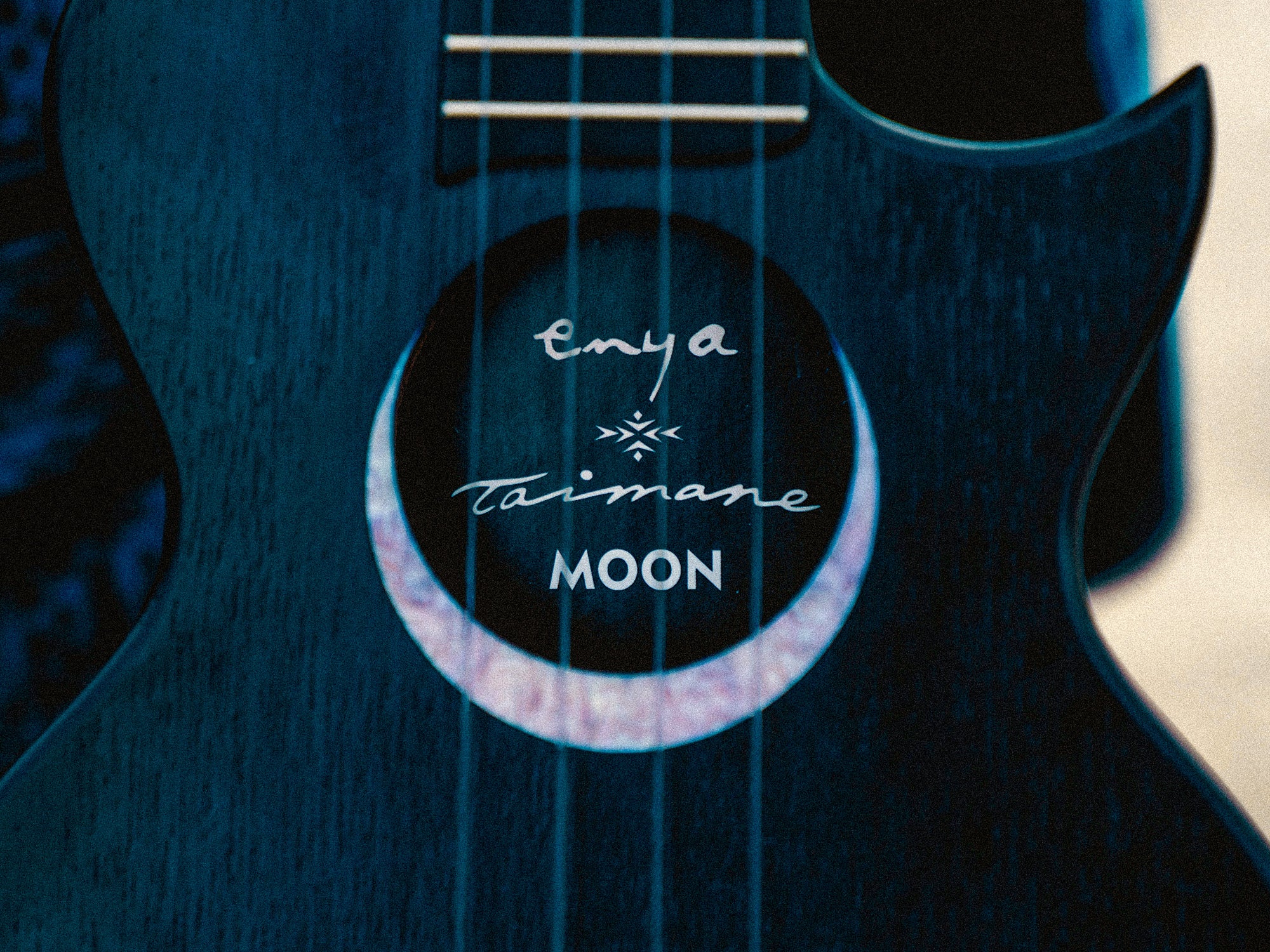 ' This ukulele represents the night sky. An abalone crescent moon cradles the sound hole. Iwa Birds on the fretboard will guide your fingers, and the night star on the crown of your ukulele will light the path to your musical soul. This signature ukulele represents who I am as an artist. Thank you for believing in me. ' —Taimane